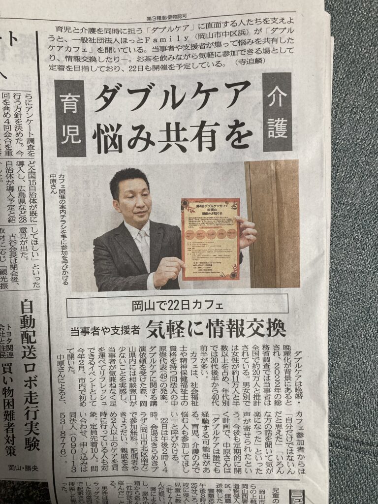 ダブルケアカフェについて山陽新聞に掲載されました(2025/11/20)